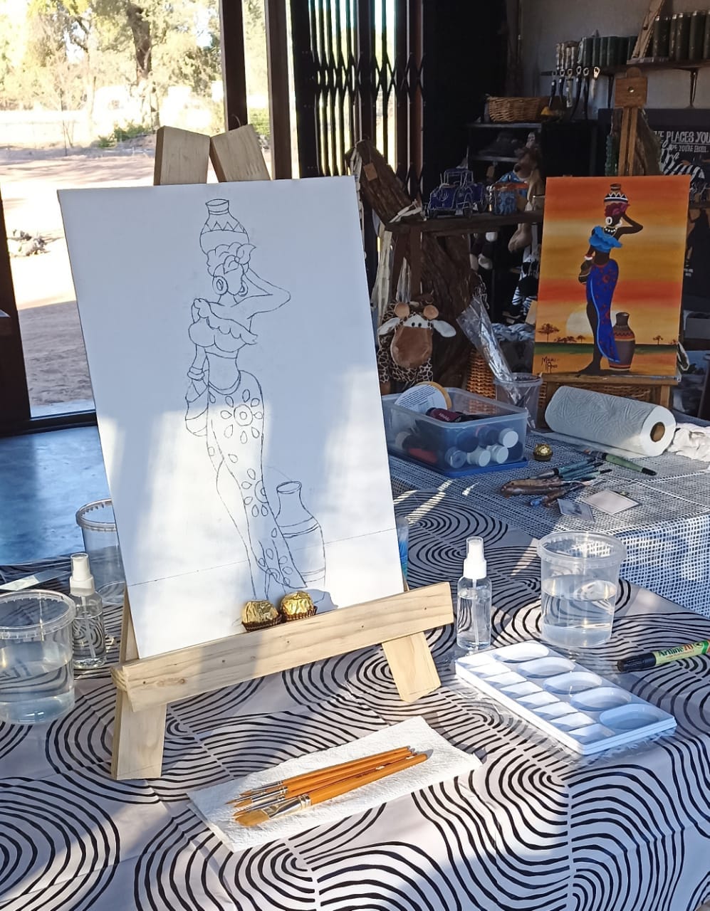 - Create your own African artwork, whether it’s a wildlife scene, tribal patterns, or the vibrant landscapes of the region. Our local artist will walk you through every step, making it easy for beginners and fun for experienced painters alike.