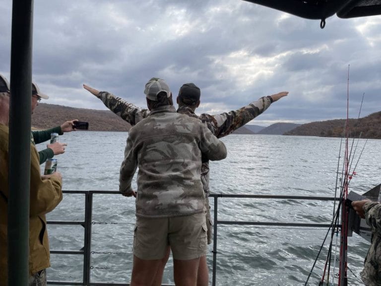 Imagine yourself on a sun-drenched day under the African sun, gliding across the tranquil waters of a picturesque dam surrounded by the bushveld on a spacious pontoon boat. The gentle hum of the engine is the only sound breaking the perfect stillness of the morning. The water sparkles as it reflects the clear blue sky, creating a sense of endless calm. As you settle into a comfortable seat, your worries begin to fade away. Whether you’re with family and friends, or simply enjoying some solitude, a day on the pontoon is all about relaxation and leisure. You could drop anchor in a secluded cove, where the only company is the chirping of birds and the soft rustle of the breeze through the trees. It’s the perfect spot for a peaceful bit of fishing, or just soaking up the sun with a cold drink in hand. You will be able to view the beautiful nature and see some kudu, hippos or crocodiles.